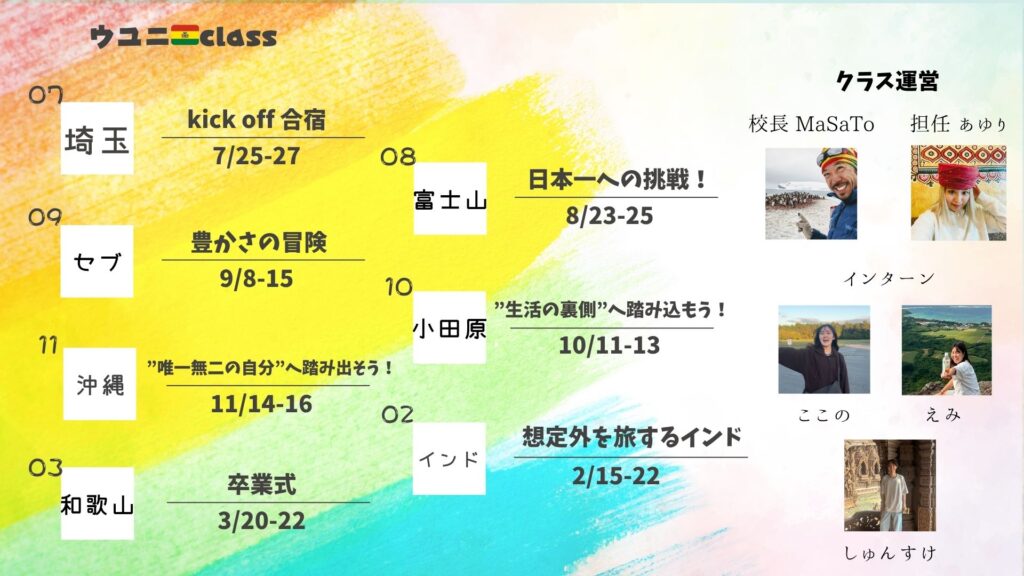 世界一周大学は、「🇯🇲ジャマイカクラス・🇳🇿ニュージーランドクラス・🇧🇴ウユニクラス」の3クラスあります。